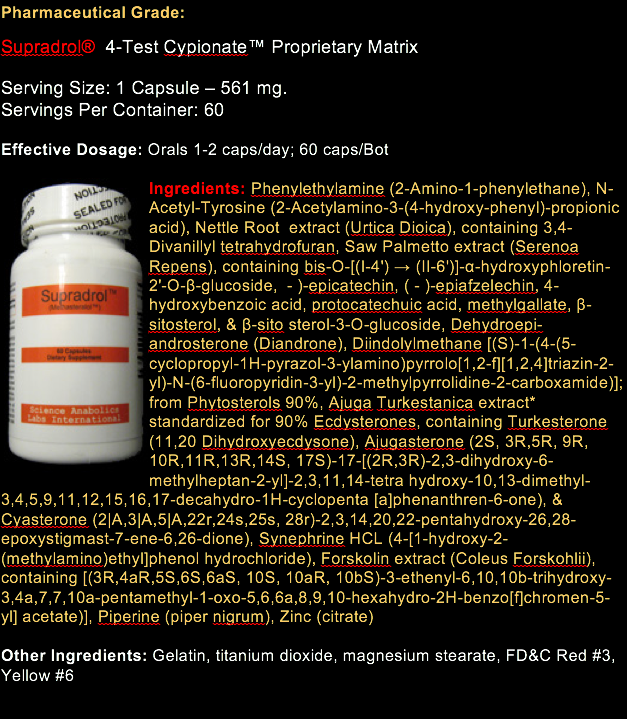 "I have 4 weeks left (Supradrol, Protropil, Testanabol) and I'm impressed. Talk to you soon...Great product line!" Robert N. Minerva, OH "I purchased Supradrol about a month back and let me tell you this stuff is the real deal. It took me only three weeks to put on 8 pounds of lean muscle. This isn't just to mention of chiseled my abs and oblique's got. I would recommend this product to anyone who wants true muscle that lasts and doesn't cause water retention." Mike A. Agawam, MA “I am 41 years old and I have been using Supradrol for nearly a month now, and I just added Winnabol a week ago. I must say that I've never had this much energy to burn. The "Supradrol" makes me feel as if every pump is easy and counting for some real muscle gains. After adding the Winnabol my body seems like it is on fat-burning and muscle building auto-pilot. I have regained much of the strength I had lost from a shoulder injury late last year. There have been no negatives in the bedroom. In fact, my wife loves the results and she can't keep her hands off of me. I just want to thank you guys for offering such great products. You have another satisfied customer! Can't wait to try Deca-Diboldazol for more size and shape.” Gerald B. Keller, TX "Just wanted to let you know how your products rocks, my flatmate was getting big and we were both working out together taking protein, shelf supplements etc and thing were moving along same old same. I did not tell you because I wanted to know they would work before we both wasted our money. Well proof is in the pudding so I ordered Deca-diboldazol and Supradrol and now 6 weeks later the results are unbelievable, have to be seen before and after to believe. Every one in the gym thinks we're on the juice." Keith L. Essex, UK